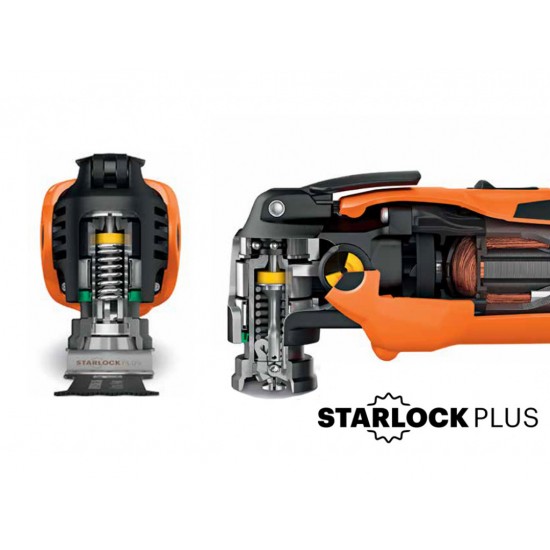 - Porte-outil StarlockPlus : vitesse de travail plus rapide et précision accrue grâce à une transmission de puissance maximale sans perte. Le porte-outil StarlockPlus vous permet d’avoir accès à près de 100 accessoires FEIN dans les catégories de puissance Starlock et StarlockPlus.
